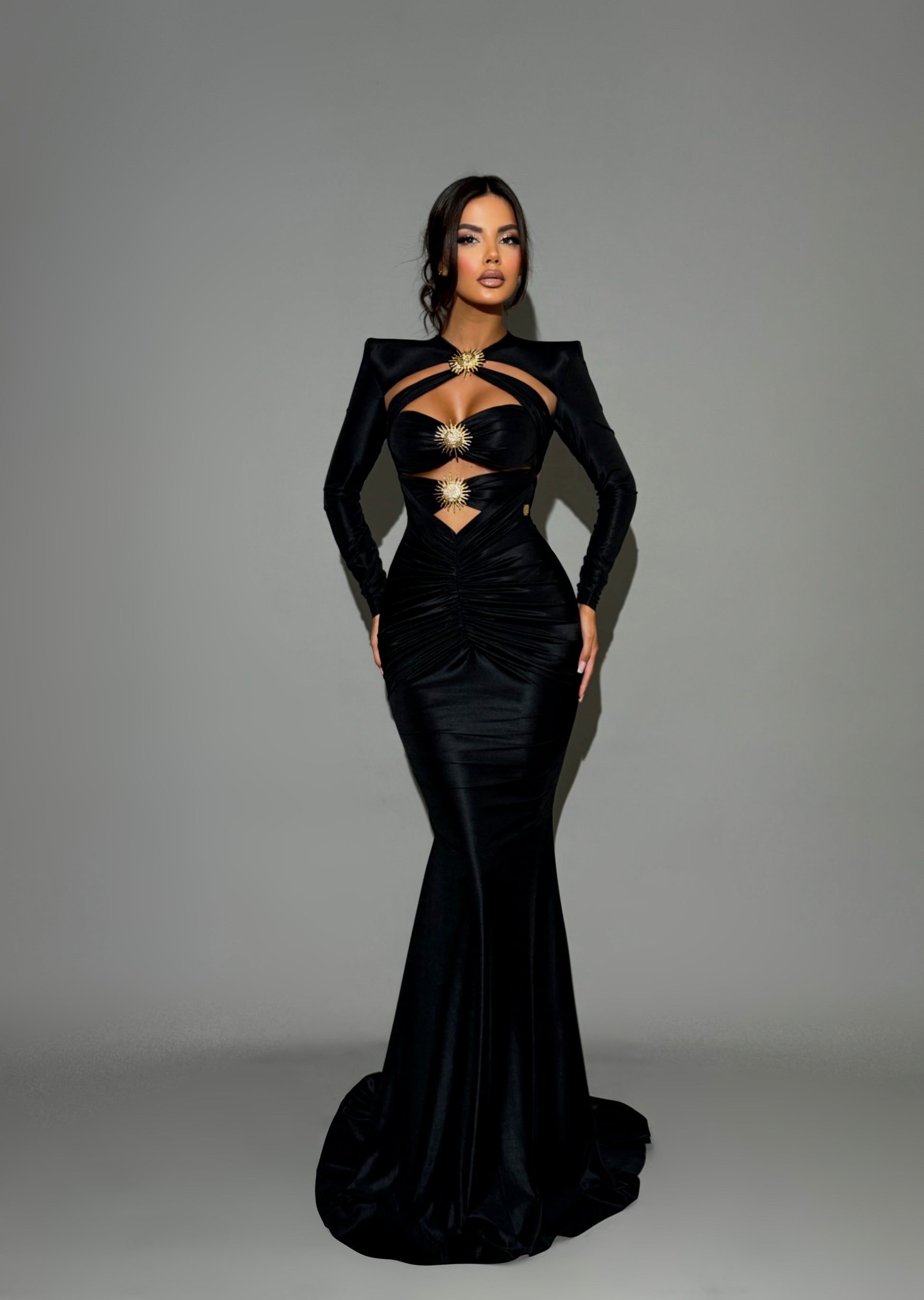 Helios - Gold-Accented Cut-Out Long Sleeve Dress