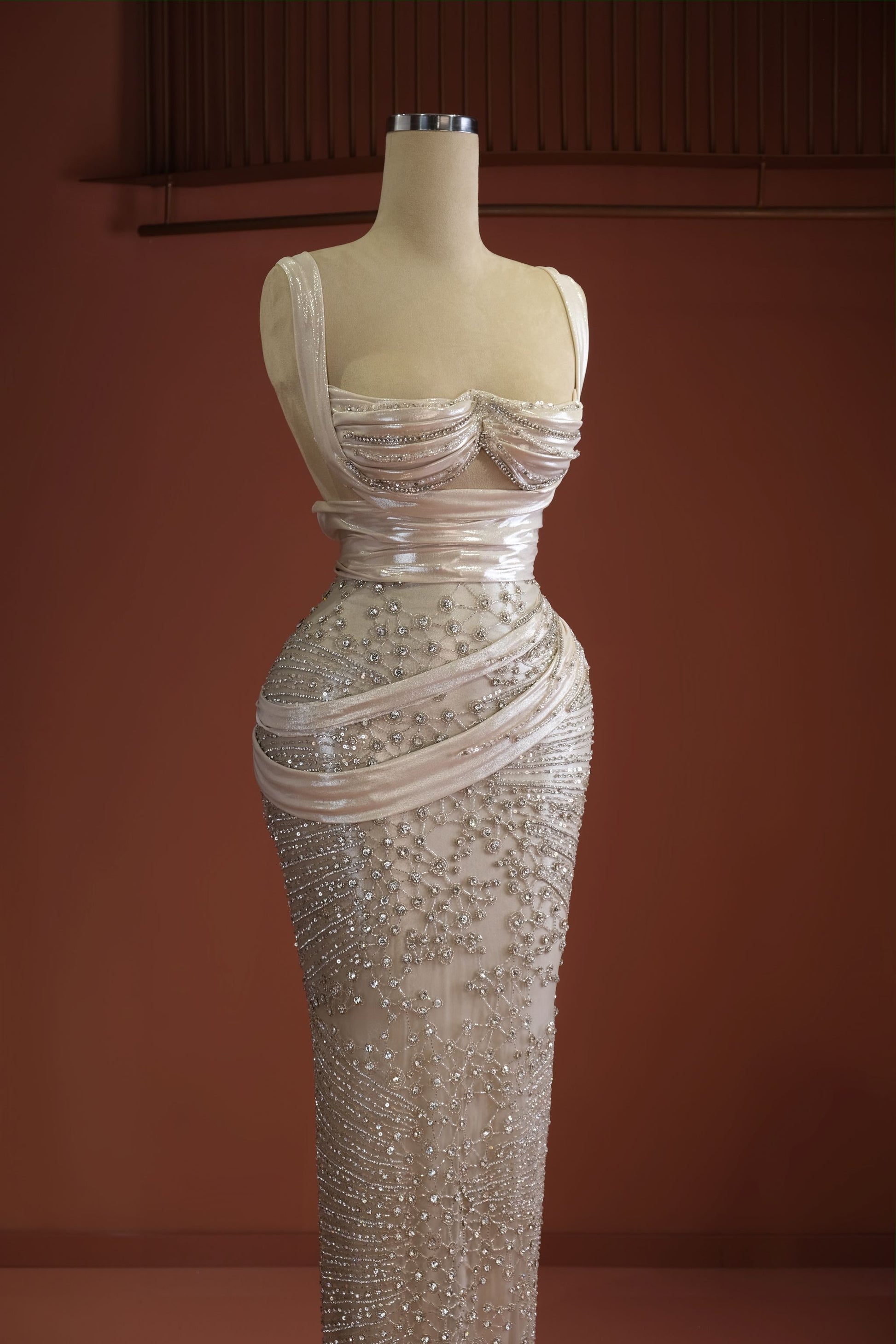 • Draped details on the bust and waist area
