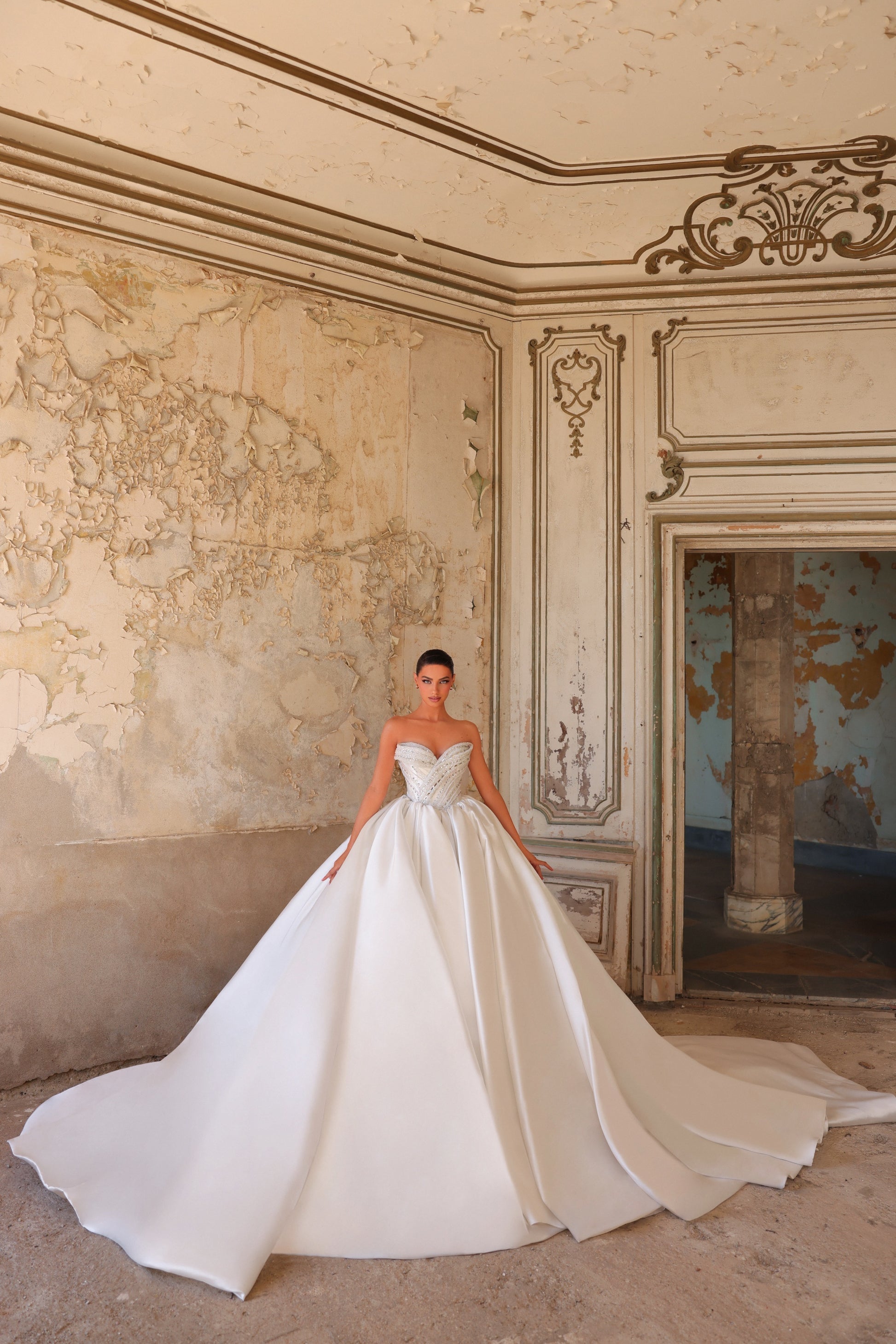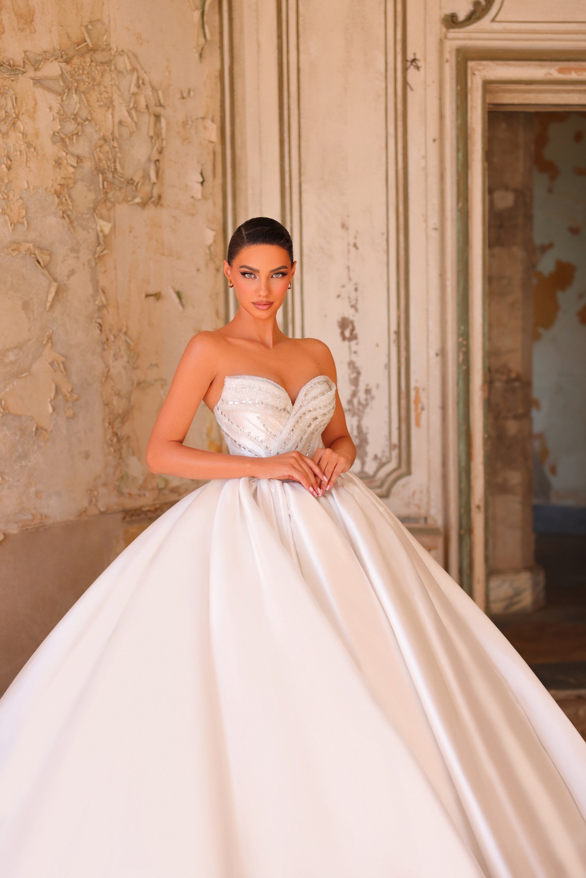 • Dramatic ballgown silhouette with a very full, voluminous skirt
